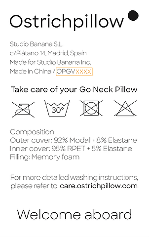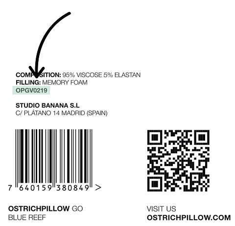 The Original Napping Pillow, Go Neck Pillow, Heatbag, BedPillow, and Light Versatile Pillow have the batch code on their label and look like this.